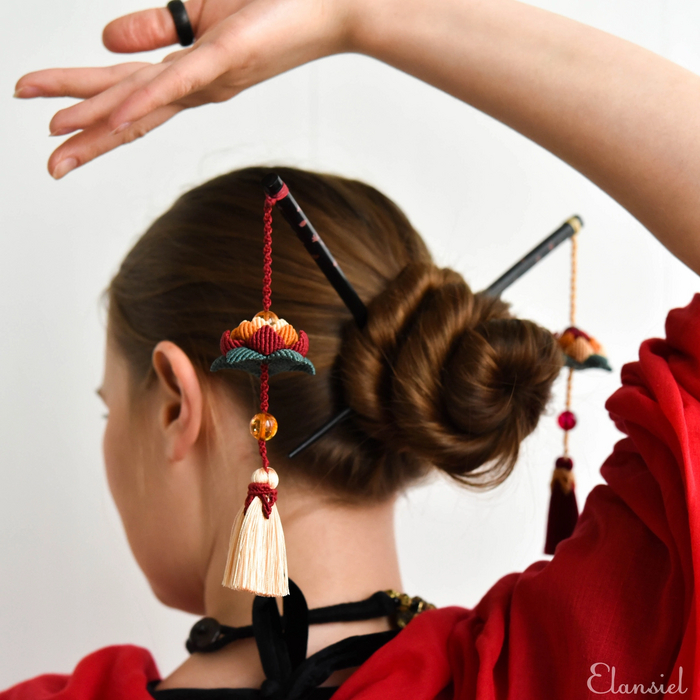 Как-то в раз ещё в 2020 году у меня заказали сделать декор для двух китайских палочек, чтобы ими закалывать волосы. К тому моменту я уже ждала случая попробовать реализовать идею с лотосами.