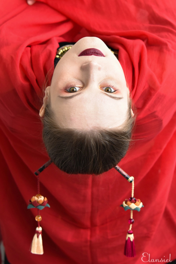Цвета подбирала, опираясь на имеющиеся цвета бусин. Мне показалось очень интересным сделать не два одинаковых лотоса, а инвертировать порядок цветов и носить эти шпильки вместе. Оказалось, эта идея понравилась не только мне)) Такой вариант действительно шикарно смотрится в образе.