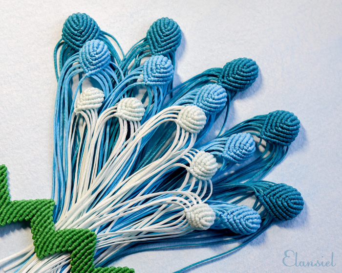 По сути это то же, что и макраме, только из тонких ниток (1 мм и тоньше). Обычно используются синтетические нитки, которые позволяют обрезать все кончики (а их может быть очень много) и аккуратно припаять их с изнанки изделия. В макраме же кончики обычно приклеивают клеем (с изнанки это выглядит менее аккуратно) или оставляют свисать, потому что часто используются именно натуральные нитки.
