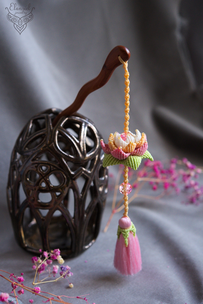 Сразу скажу, сам лотос не я придумала. Я лишь додумала сделать из лотосов, которые я нашла на пинтерест, не подвеску в машину, а шпильки для волос с красивыми кисточками, чтобы шпильки издалека напоминали украшения канзаши.