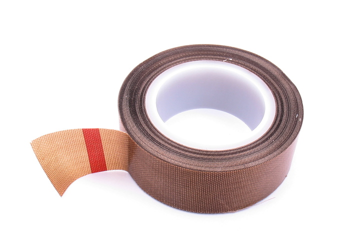 Стеклохолст с пропиткой из ПТФЭ (тефлоновая изолента). Довольно экзотическая изолента - обладает хорошей термостойкостью (некоторые коврики для выпечки делают из такого же материала), отменной химической стойкостью, и что самое важное - низкой адгезией к поверхности, тоесть она очень скользкая. Вы ее можете увидеть например в запайщиках пакетов, она проводит тепло, но пластик пакета к ней не прилипает.