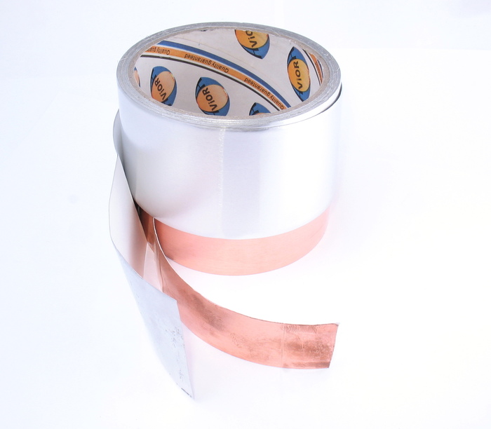 Фольговая лента. Просто фольга в рулоне, с самоклеящимся слоем. Используют для экранрования там, где не предполагается движения или смещения при работе.