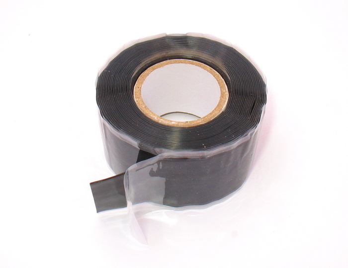 Самослипающаяся лента. (самосваривающаяся, самовулканизирующаяся) Представляет собой толстую ленту из резиноподобного вещества. Удаляем защитную пленку, и наматываем с натягом, чтобы лента удлиннялась. Слои ленты намертво слипаются, ее уже не размотать. Обеспечивает герметичность слоя изоляции.