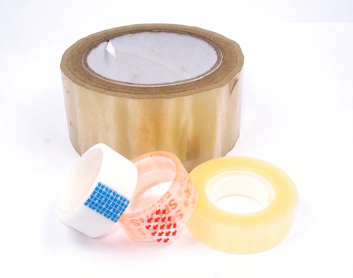 Скотч. Имя ставшее нарицательным. Если мы говорим о канцелярской липкой ленте, то это слой БОПП (Биаксиально ориентированный полипропилен) со слоем клея. Если вдруг приспичит использовать скотч в качестве электроизоляции - это возможно, несколько слоев скотча вполне держат 220В, но работать им неудобно - плохо тянется и легко рвется - эффект расстегивающейся молнии в полный рост.