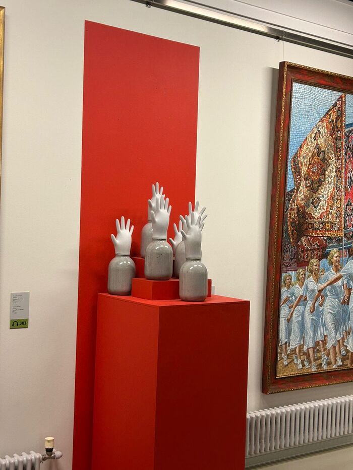23.05.25 в 23 часа музей закрывался, мы получили куртки в гардеробе и пошли в туалет, к нам подошёл охранник и показал пальцем на дверь выхода: "вы же сами сможете выйти?", сказал он, "да" ответили мы, он ушел по своим делам. После туалета мы зашли в указанную нам охранником дверь, прошли через турникет и решетку, и упёрлись в закрытую дверь, решили вернуться, но турникет запер нас (мы остались между двумя закрытыми дверями в клетке). Вернуться обратно в музей не получилось, т.к. турникет был вертикальным от пола до самого потолка, щелей в между прутьями не было. Ощущение было что мы находимся в тюремной камере, из-за закрытой двери и клетки, которая закрылась у нас за спиной и не выпускала нас обратно. В помещении была камера, мы стали махать в надежде, что охранник нас увидит, но увы. Подождали 20 минут, но нас так никто и не освобождал. Я позвонил по указанному на сайте Эрарты номеру телефона, но трубку никто не брал. Я позвонил в полицию и службу спасения, нам сказали ждите. Мы прождать уже час взаперти. Дежурный участок полиции не отвечал. Мы приняли решение вскарабкаться по решетке и протиснуться в узкую щель под самым потолком. Выполнив это экзамен по скалолазанию мы оказались одни в музее ночью. Начали ходить в темноте по помещениям музея в надежде найти охранника, параллельно созваниваясь со спасательной службой. Все безуспешно, охранника найти мы не смогли, а полиция и спасатели ничего кроме ожидания предложить не хотели. Так прошло уже больше двух часов в темноте в музее, время было около 01:30 ночи. Перед окнами музея объявился наш спаситель: молодой человек выгуливал собаку, он увидел нас и подошёл услышав наши крики. Он согласился помочь: сказал обойдет музей по кругу и поищет охранника. Ура!, он смог разбудить спящего охранника, который включил свет в музее и подошёл к нам. От охранника пахло алкоголем. И первое что он предложил, это не выпустить нас, а закрыть на допрос в подсобное помещение. Мы были вынужденны отказать охраннику, он был против, но звонок в полицию сразу убедил его выпустить нас на свободу.