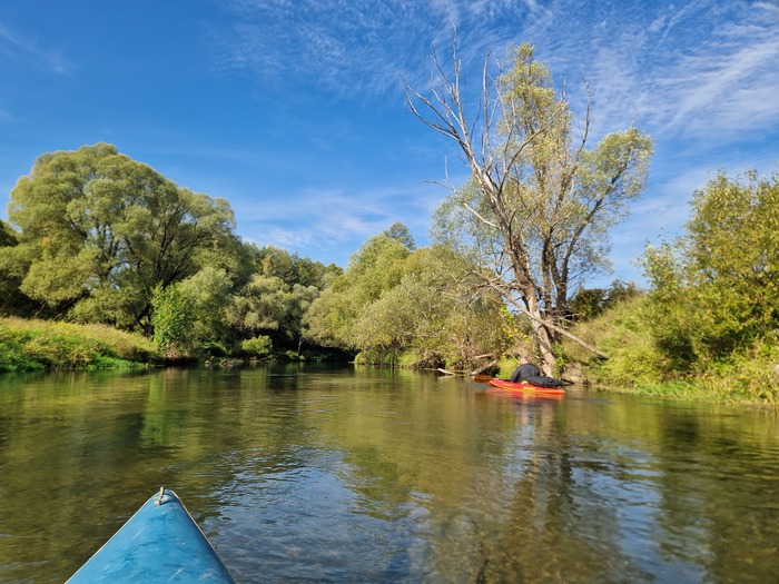 Маршрут от Тарасково до Можино, около 55 км. Популярный маршрут для сплавов оказался в этот раз безлюдным: попадались только одинокие рыбаки и цапли с утками, которые сопровождали на протяжении всего пути.