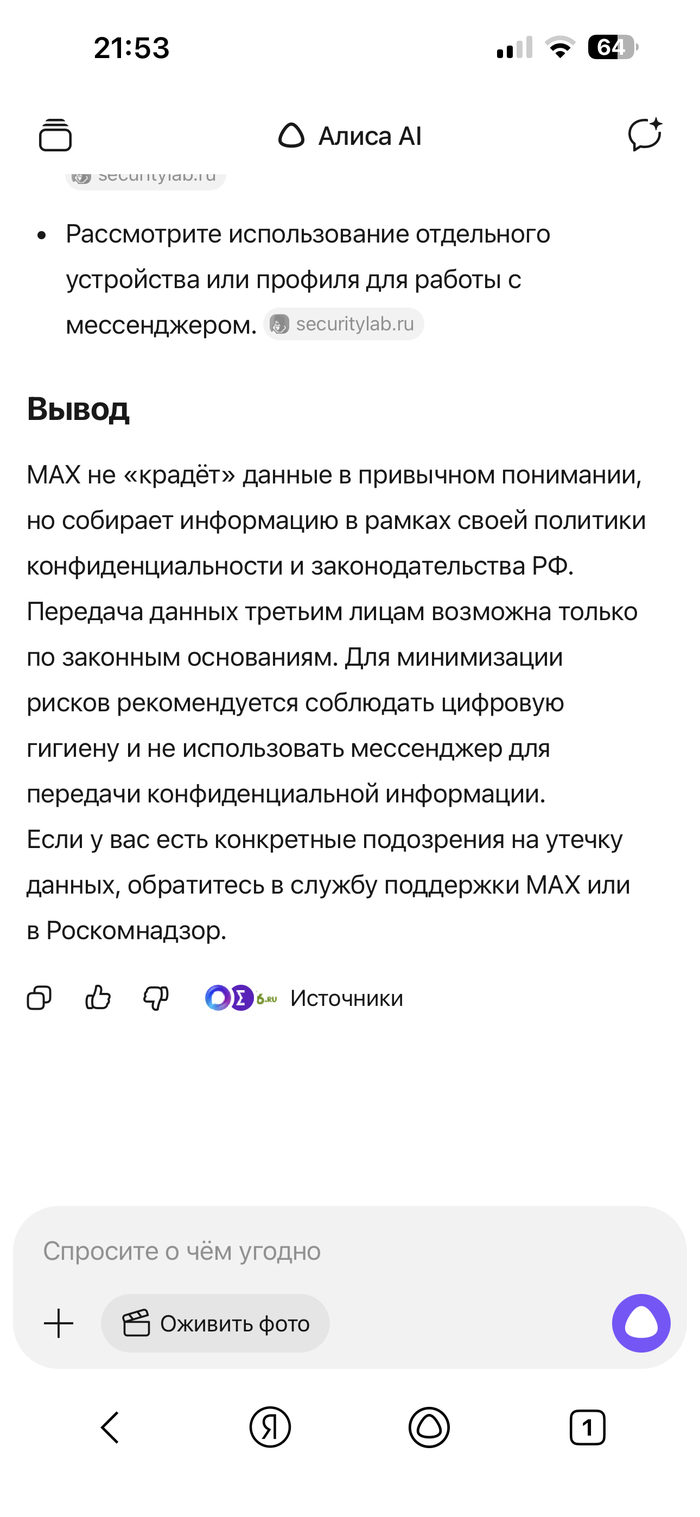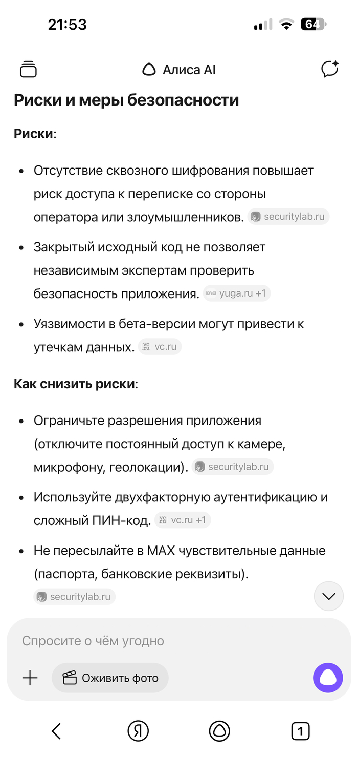 [моё] Мессенджер Мессенджер MAX Волна постов Искусственный интеллект Яндекс Алиса Ответ на пост Длиннопост
