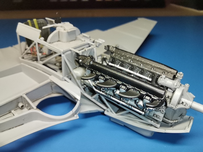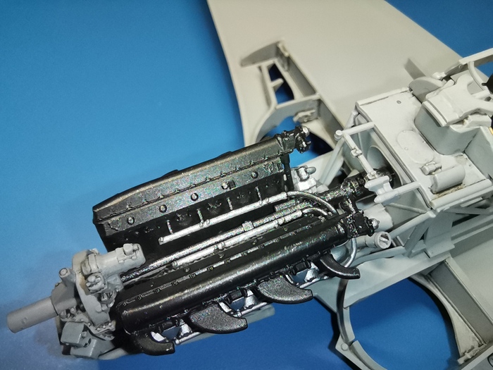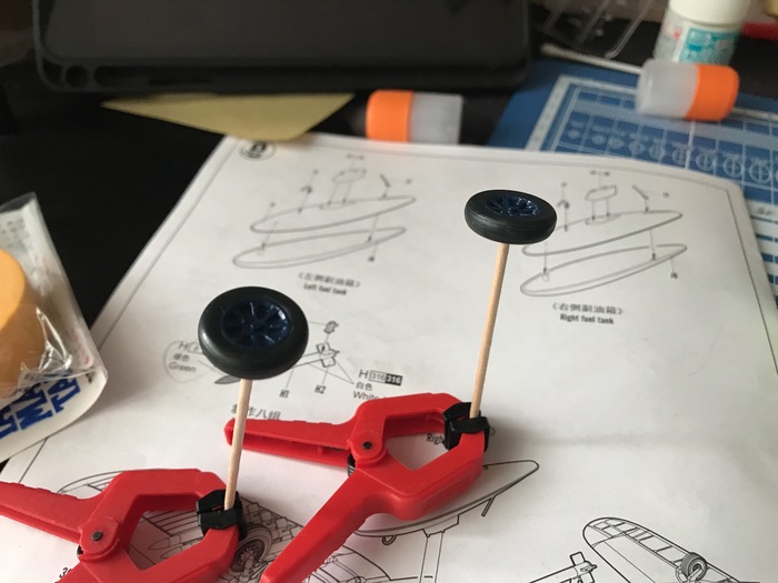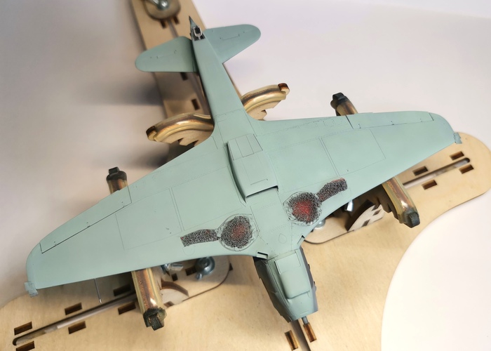 В комплекте шли подвесные баки, вся сложность покраски которых заключалась в том, что у меня не было куска пенопласта, чтобы их воткнуть и, таким образом, зафиксировать, а затем аккуратно покрасить в два приёма. Поэтому я красил их просто в лежачем положении. Они постоянно норовили перекатиться и немного нервировали. В процессе я потерял одну из трубок, которую так и не нашёл.
