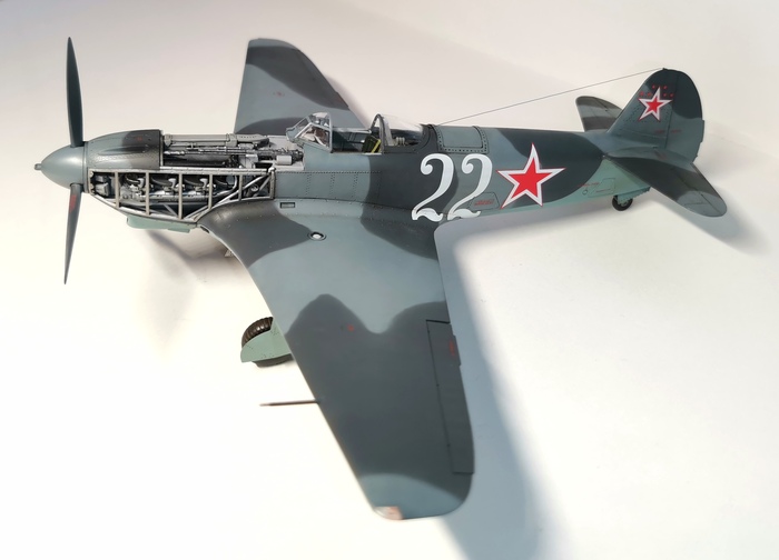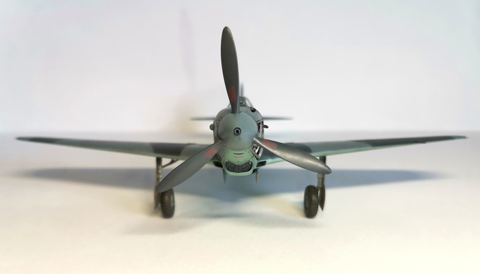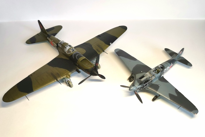На этом всё! Надеюсь впереди меня ждёт будущее с фототравлениями, прешейдингами, камуфляжами и смывками, а пока хотелось бы собрать ещё одну модель так же из коробки, но с учётом всех допущенных ошибок. Авиационный 48-й масштаб мне понравился — мелкоту я не люблю, а для пылесборников большего размера уже тяжело искать место, поэтому если буду делать самолёты, то, пожалуй, только 48-го масштаба и плюс-минус периода ВОВ. Сейчас в одном из интернет-магазинов отложил себе модели основных советских истребителей того периода и новенький Ил-2 от всё той же "Звезды", но меня немного отпугивает камуфляж - кажется для решения этой задачи всё-таки нужен аэрограф.