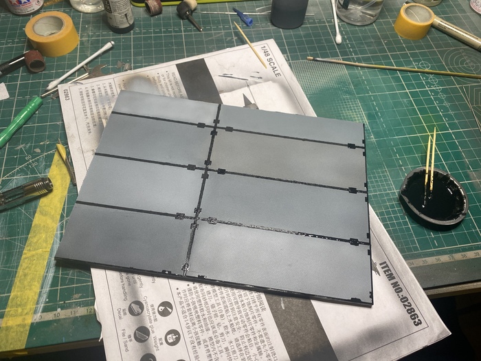 Стоит отметить, что я не воспользовался смывкой Tamiya panel line accent color (black), потому что во-первых уже слегка устал от этой модели, во-вторых решил, что для первого раза достаточно просто собрать всё из коробки без излишеств, а в-третьих подумал, что сама по себе модель и так достаточно тёмная и на ней не особо будет заметно выделение всех элементов.