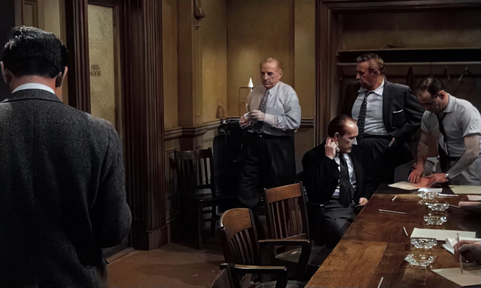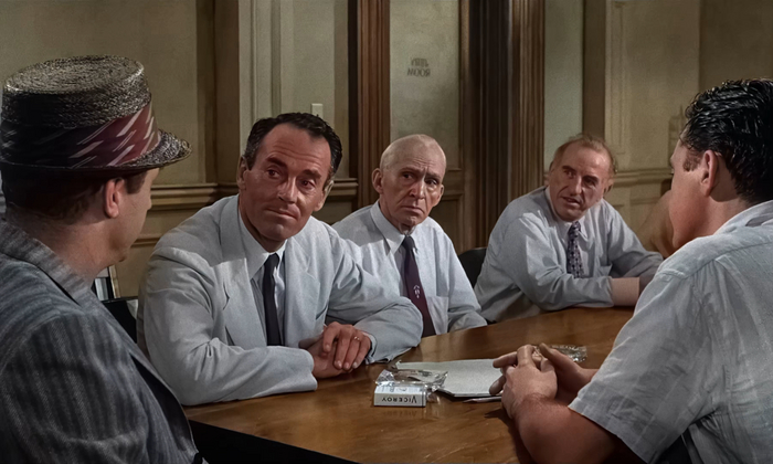 Как фильм воспринимается сейчас? Отлично смотрится, без скидок на возраст. Как, впрочем, и любой другой хороший разговорный фильм, но всё же решение с изменением масштаба комнаты (об этом в фактах) выбивает «12 разгневанных мужчин» из общего ряда.
