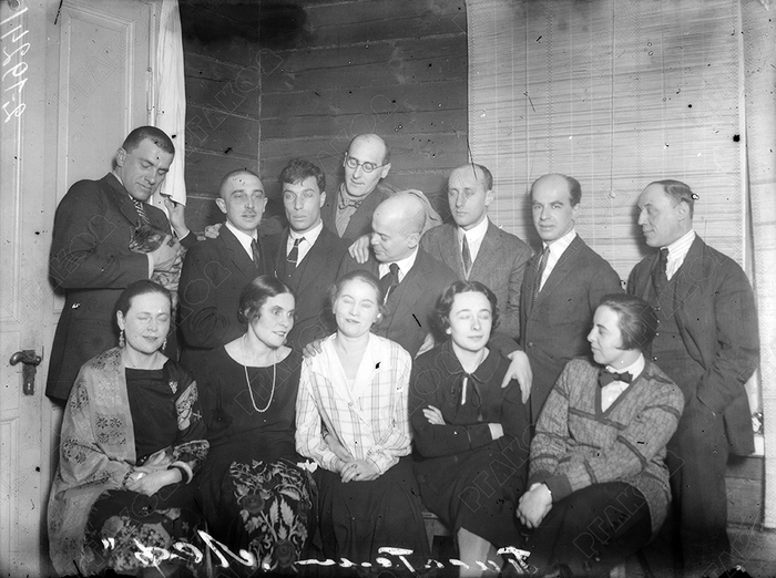 Группа писателей и поэтов: В.В. Маяковский, С. Третьяков, В. Шкловский, Б. Пастернак, О.М. Брик, О.В. Третьякова, Л.Ю. Брик