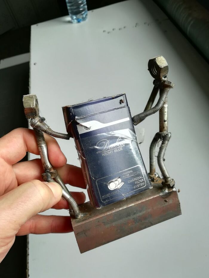 Сварганили однажды держатель для одной оправки, пару раз пригодилось. Потом стали покупать уже сваренный узел и больше этот зажим не пригодился. Прикольная ручка-зажим из гаек. Хозяйке на заметку между прочим)))