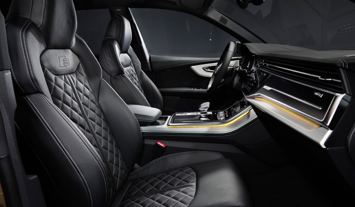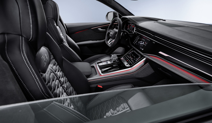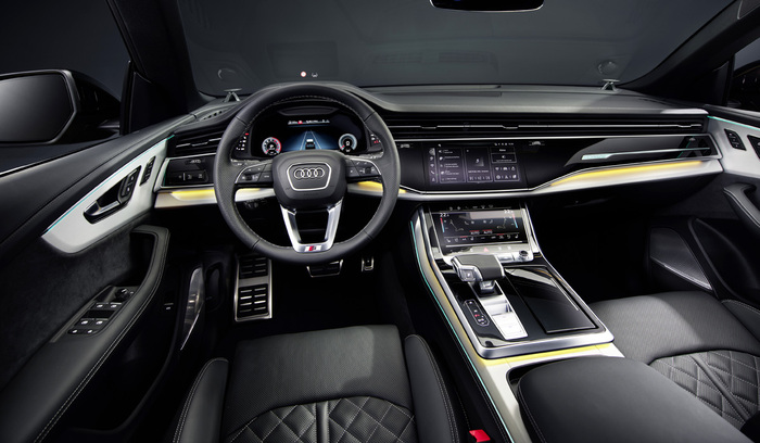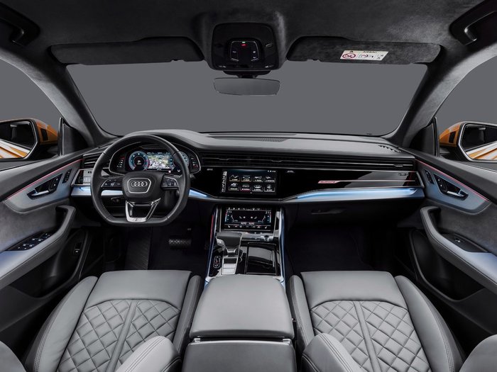 Q8 имеет так же как и Q7 версию SQ8 tdi и не доступную для Q7 версию RS, которая оснащается битурбомотором V8 4.0 с отдачей в 600л.с. и 800Нм. в добавок мотор оснащен 48-вольтовым стартер-генератором. В трансмиссии — восьмиступенчатый «автомат», постоянный полный привод с несимметричным дифференциалом (распределение тяги в пропорции 40:60 в пользу задней оси), а также активный задний дифференциал.