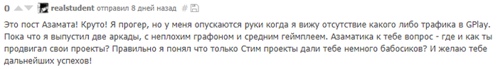 В котором я писал о моём прогрессе в игродельчестве. Отвечаю :У