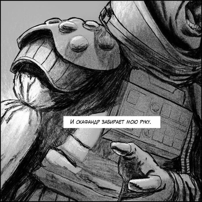 Рука начала чернеть. Он видел это через разорванный комбинезон. Сначала синяк, потом багровое пятно, потом чернота, похожая на пролитую тушь. Гангрена? Он сказал об этом «Вепрю».