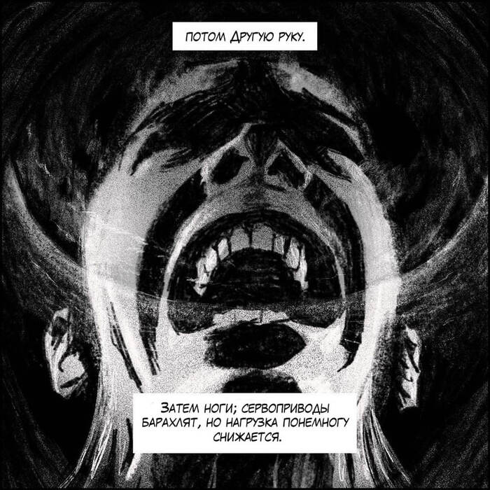 Он шёл дальше. Шаг за шагом. Скрип сервоприводов теперь доносился не только снаружи, но и изнутри. «Вепрь» начал отказывать. То нога залипнет на полчаса, то система охлаждения выдаст сбой. Но он шёл. Его вели.