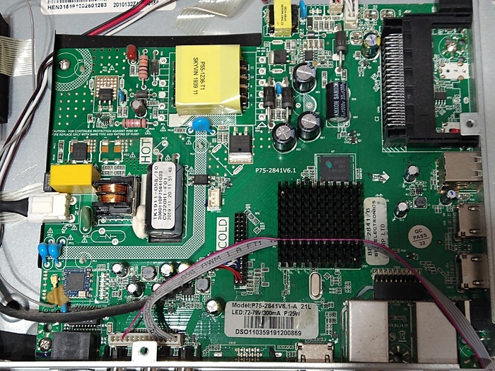 Яркость изначально не порадовала - чуть ниже, чем у висевшего над проверочным стендом рекламного телевизора. Это при том, что в настройках она была выкручена на максимум самим производителем. Битые пиксели (черные точки) имелись в наличии, причем не единичные, как я ожидал, а прямо россыпи... Но - в полосах сверху и снизу, которые обычно в широкоформатных фильмах и так черные. Но много - сотни две-три точно. Толстые рамки, не как у самсунга... ОК, хрен с ним, на кухню потянет. Серый - более-менее равномерный, насколько это можно понять в освещенном зале магазина. Вроде всё проверили, что надо (как дальше оказалось - нет))) Работает? Работает. Берем. Когда выдергивал вилку из розетки - жена и сын сказали, что видели какую-то промелькнувшую полоску в момент выключения. Я не обратил внимание. А зря...