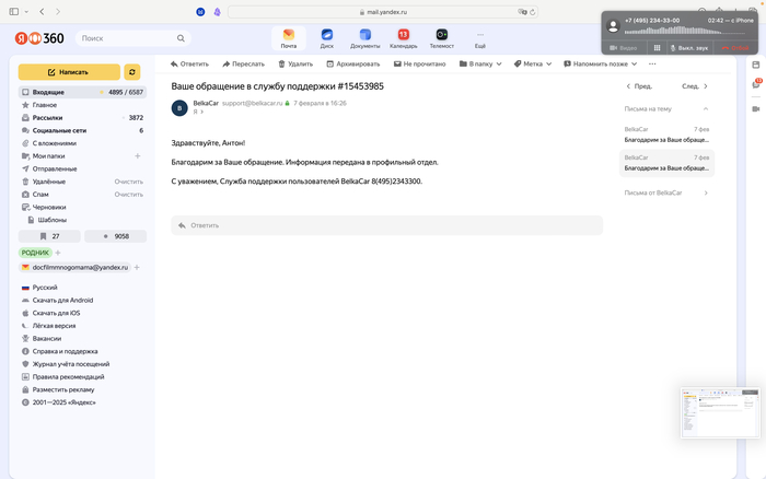 Решил я что Яндекс разберётся с этим недоразумением и написал им в поддержку, на что получил ответ, что идите разбираться с белка кар, мы тут якобы не причём.