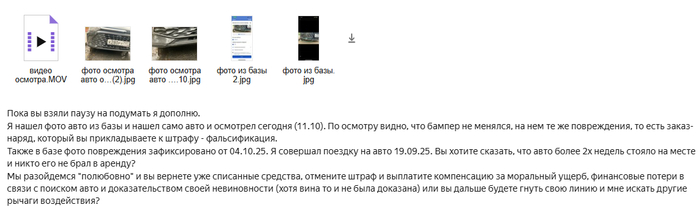 Вспоминаем, что я должен оплатить ремонт. А что мы видим по итогу? А король то голый ремонта то не видать, те же повреждения, что и были на фото в базе. Да и не реально их увидеть с того ракурса, что они там приплетали. Странные дела... А еще страннее, что в базе фото повреждения бампера аж от 4.10.25, а я ездил на авто 19.09.25. То есть машина, по логике умных пидара.. людей из Белки стояла аж 2 с половиной недели и никто ее не пользовал! (Хотя на фото видно, пейзаж вокруг уже другой)