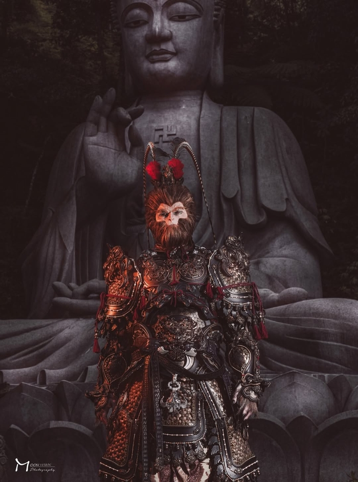 Эта скульптура Царя обезьян, выполненная из... теста* преподавателем Ланьтяньской кулинарной школы Чжэн Гэнминем и его учениками, находится на территории монастыря Шуйлу (水陆庵), расположенного в уезде Ланьтянь города Сиань провинции Шэньси.