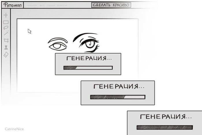 2355 CatrineNice Фотошоп 2023 2 года назад Нарисовала шутку про новый фотошоп, в который добавили нейронку %)Вк Показать полностью 10 [моё] Photoshop Авторский комикс Арт Комиксы Длиннопост Catrinenice 23 2 2 Ещё 0