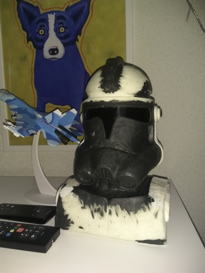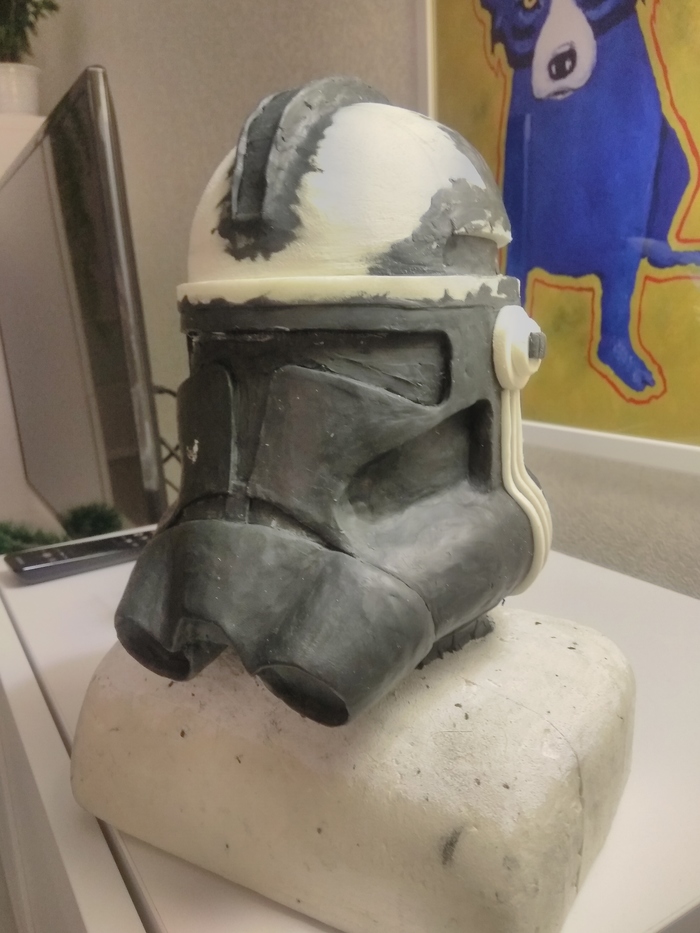 В процессе изготовления шлема клона второй фазы поимел спор с коллегой насчёт этих самых микрофонов, вернее, сетки на них.