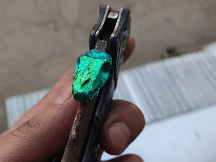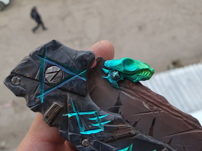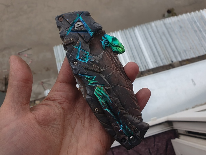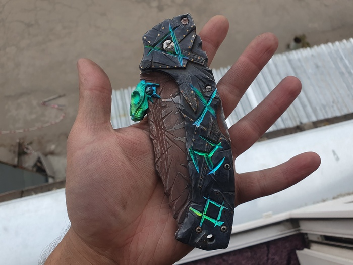Титановые накладки, руны травление, меднение, анодирование, клипса, вейв в виде черепка крысолюда и прочие слова..