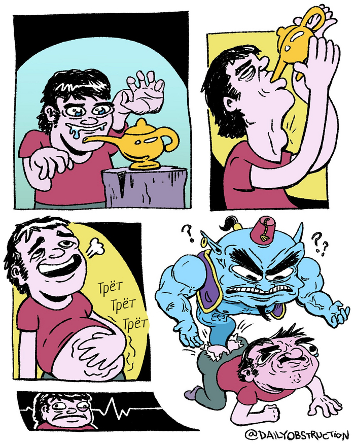 //У автора все комиксы странные, но этот вообще за гранью. Вообще не понял о чём он.