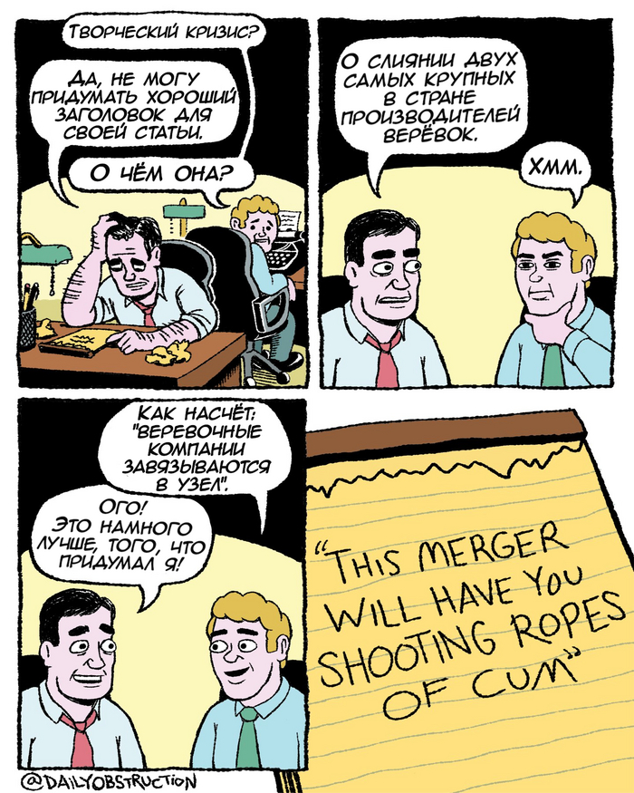 //Я не придумал как перевести последнюю фразу использовав слово верёвки. Приблизительный перевод: "Это слияние заставит вас обкончаться"