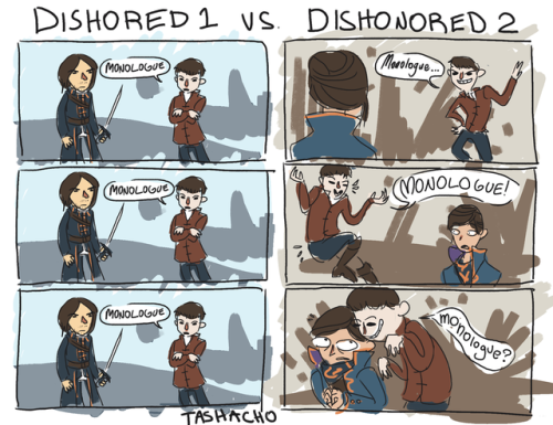 На этот раз в начале игры дается выбор, за кого мы будем играть: старого приятеля Корво, или молодую Эмили. Геймплей за них различается в мелких деталях, но в общем и целом схож. Умения в основном дублируют друг друга и отличаются незначительно. Так как игра подталкивает нас к скрытному прохождению, то доброй половиной наших возможностей мы не воспользуемся ни разу. Перенос (телепорт), зрение сквозь стены, невидимость. – вот основной набор спецумений, которыми мы будем пользоваться. Остальными - очень редко, чтобы время от времени разнообразить прохождение.