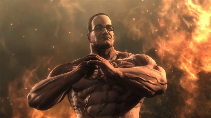 Этот босс — ходячий мем и главная причина, по которой многие так и не увидели финальные титры. Первая фаза боя — это чистое издевательство. Вы наносите Армстронгу ноль урона. Буквально. А он в это время стоит и с ухмылкой комментирует ваши тщетные попытки.