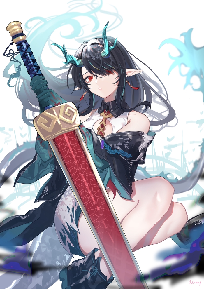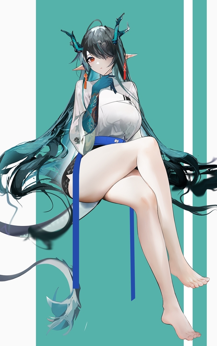 18+ Anime Art Аниме Arknights Nian Dusk (Arknights) Купальник Девушка с рогами