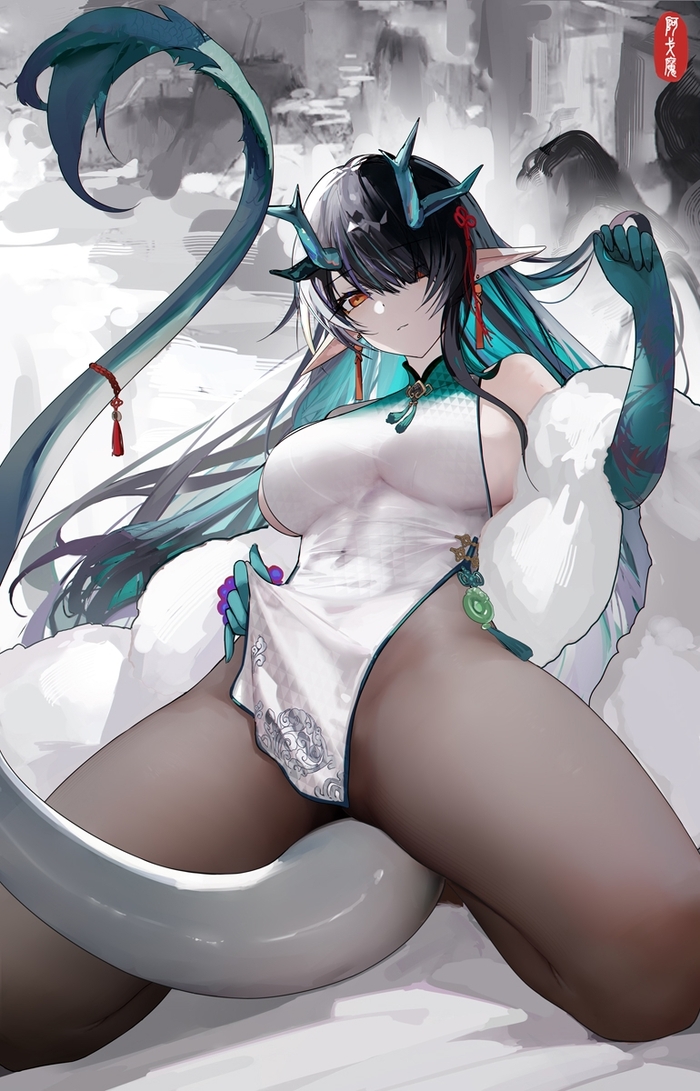 18+ Anime Art Аниме Arknights Dusk (Arknights) Девушка с рогами Купальник Длиннопост