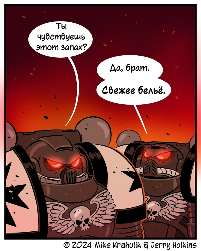 Поскольку это научно-фантастический католицизм, со всем его готическим величием и ритуалами, какие только можно было придумать, большая его часть проходит в церкви. Я пытаюсь донести до вас, что бюджет на свечи в мирах Империума просто сумасшедший, в то время и в том месте, где воскуривание священных благовоний в кадильнице является частью рутинного технического обслуживания двигателя. Всё это настолько насыщенно, с самых странных сторон, что мне это не может не нравиться. Это сатира и поскольку лучшая сатира должна полностью и по-настоящему понимать свой предмет, она также является образцом научной фантастики в стиле барокко. Вы можете сказать это на прямую или нет, и это сработает в любом случае.