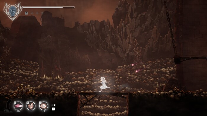 Но, видимо, для баланса разработчики решили, что если в одном аспекте Магнолия стала комфортнее для игроков, значит другой сегмент необходимо усложнить. И выбор пал на платформинг. Боже сохрани грешную душу того человека, который решил добавить сюда такие нычки, до которых добираться придётся, ломая себе все пальцы и начиная с одной точки раз за разом. Серьёзно, я ни на одного босса не потратил столько попыток, сколько убил на то, чтобы попасть в пару тройку потаённых локаций. В Ender Lilies вспоминается лишь один подобный момент, где нужно было сигануть с высокого обрыва и во время падения умудриться попасть в пещеру, которая ещё и находилась под скалистым навесом. А в Magnolia мои кривые пальцы страдали похлеще, чем при тщетных попытках игры на синтезаторе. Да, в чём-то вторая часть стала сложнее.