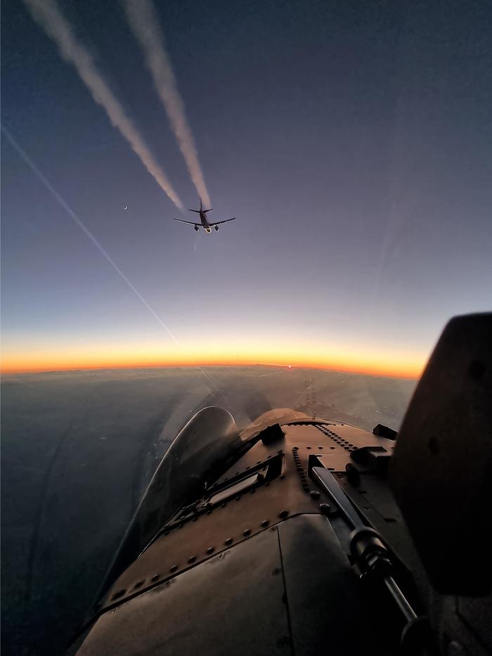 Вчера, в небе Италии, Airbus A319 вылетевший из Палермо и направляющийся в Милан потерял радиосвязь с авиадиспетчерской службой, вследствие чего на его перехват и идентификацию были подняты два истребителя Eurofighter Typhoon из 4-го авиакрыла ВВС Италии. Ну а нам достались красивые закатные виды из кабины истребителя.