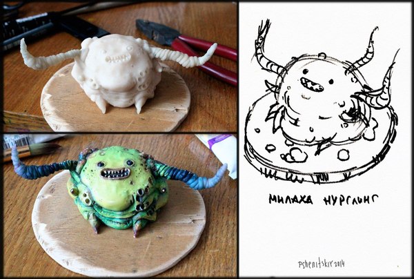 По материалам: полностью сделана из полимерной глины Supersculpey Firm. Красил акрилом.