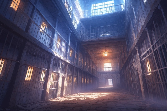 берем какой-нибудь задник с тюрьмой на скорую руку