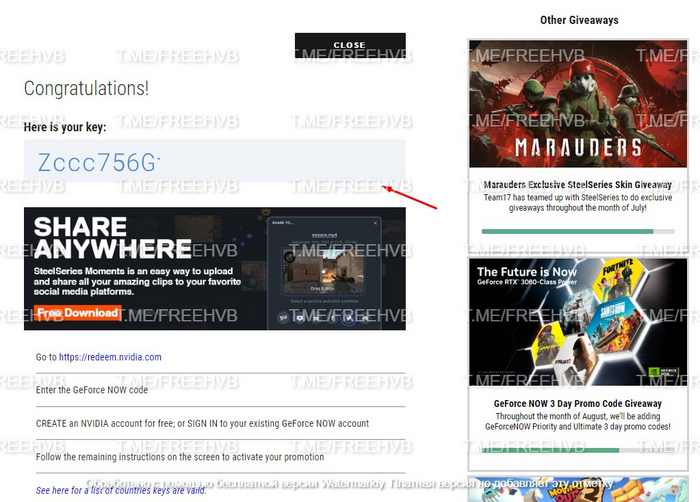 После входа пробный ключ автоматически загрузится на ваш сервер