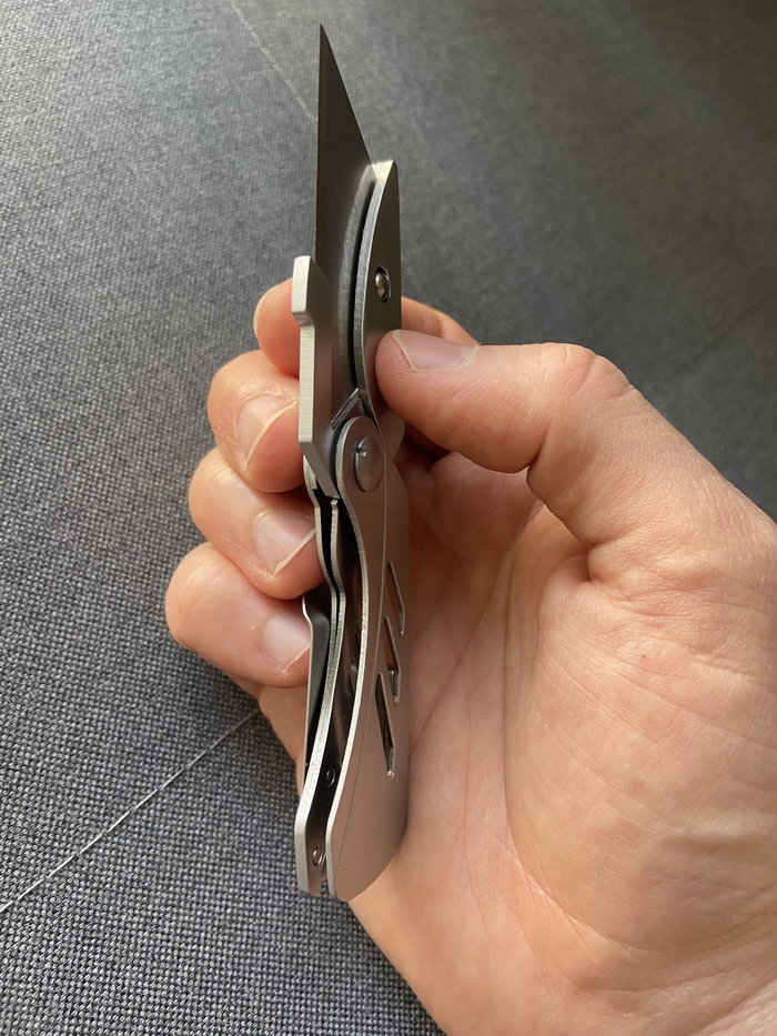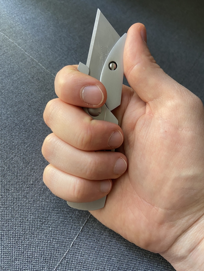 Режущей кромки у этого малыша всего 37 мм. Совсем не много, но должно хватить. В руке сидит нормально, если учесть что долго работать таким никто не будет.