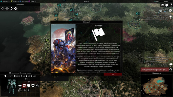 Тоже весьма интересный мод, хотя ИИ с ним работает двояко. Снимает штраф к морали за строительство городов после первого (очень спорный костыль от разработчиков, лучше бы ИИ качетвеннее заскриптовали). С одной стороны, противник теперь уходит в строительство городов и пытается даже нагадить игроку, поставив свой город ему в тылу или за линией фронта (однажды я лично напоролся на такой вооруженный "караван" хаоситов с колонистом-культистом, который через леса попытался обойти фронт, благо я успел расставить засаду), но при этом возобновляемость его армии ослабевает. Удар его армии страшен, но если её перемолоть, то врагу уже нечем крыть и нужно долго, монотонно и почти безнаказанно вгрызаться в десяток его городов, если вас больше никто не будет отвлекать. Так что рекомендую давать оппонентам напарников, чтобы было веселее (душить не передушить будет). По понятным причинам этот мод ничем не поможет фракции Космодесанта (лоялистов). Мой вердикт: на любителя.
