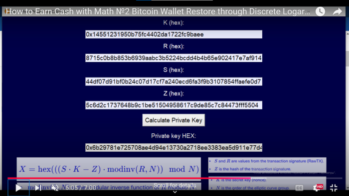 X=hex(((S⋅K−Z)⋅modinv(R,N))modN)
