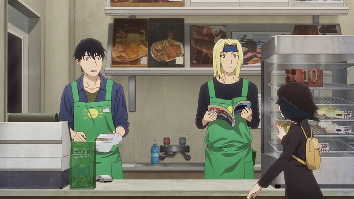 Итак: Япония. Небольшой городок. Главный герой Рикуо, что работает продавцом в ночном магазине. Вежливый, воспитанный, одинокий и довольно уже взрослый мужчина, который недавно закончил обучение в университете.