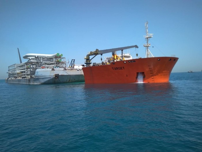 Выгружали баржи с модулями для нефтеперерабатывающего завода в персидском заливе.