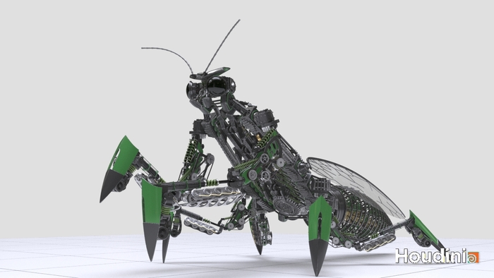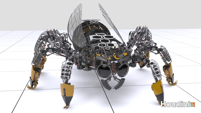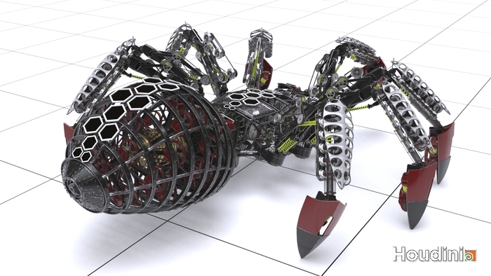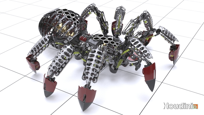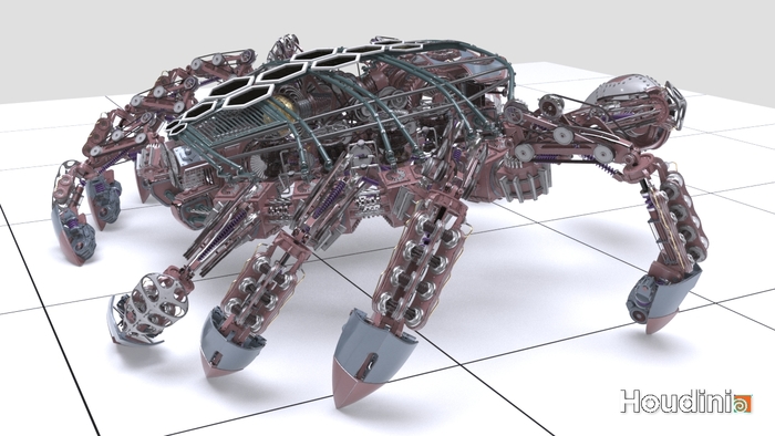 Я хочу показать как создаются сложные 3D модели механизмов с помощью процедурного моделирования в Houdini. Таким способом большая часть времени уходит не на создание самой модели, а алгоритма который исходя из меняющихся входных данных будет создавать уникальную 3D модель. Сделав свои ассеты можно быстро придать нужную форму тела и задать необходимое количество конечностей, в зависимости от которого будет автоматически смоделирован и весь механизм.