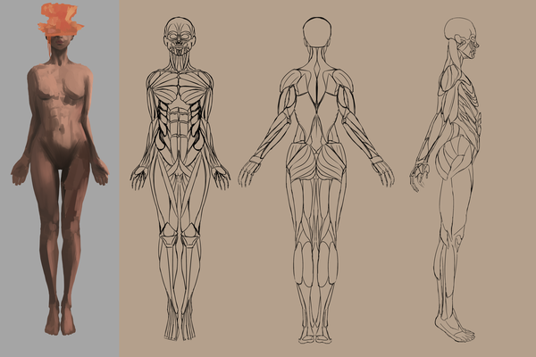 Старался с анатомией туловища, в итоге остальные части как-то выбиваются анатомической неграмотностью, особенно ключицы, но надо рисовать и другое