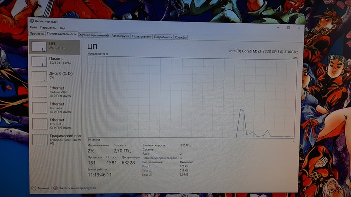 Далее включил пк и увидел что винда запустилась, открываю диспетчер задач и он показывает что проц тот же i3 3220...