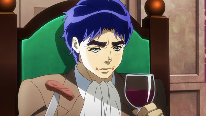 Записывал не я, не кидайтесь помидорами... Если же без шуток, то преимущества данного аниме это пафос и развитие персонажей. То ГГ обвиняет Дио Брандо, то переключается на другие проблемы, то помогает своим товарищам, то дерётся со злом и опасными личностями. Кроме того мир выглядит интересным, даже несмотря на то, что большую часть наблюдаем лишь диалоги.
