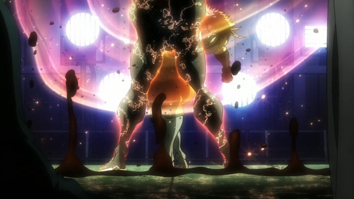 Дио vs. Джонатан: самый шокирующий момент при первом просмотре, когда спокойная история в стиле Британских романов резко становится триллером про Вампиров, кровь, зомби, непобедимый Дио и его легендарные фразы: «wryyyyyyy» «goodbye JoJo» «mud muda meda!». А также смерть бати ЖиЖи, при первом просмотре эта сцена вызвала у меня полный ахер. Как и в предыдущей битве в этой маловато интересных моментов, от которых ты думаешь: «Ёптель моптель! Как он до этого догадался!», Дио просто «умирает» от рояля в кустах, если точнее, то рояля в огне и всё.